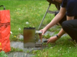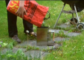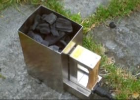 Mit diesem Gerät lassen sich mühelos Portionen glühender Holzkohle aufbereiten, die dann einfach im Grill gekippt werden